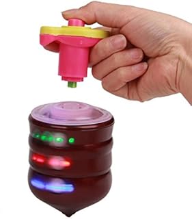 URGrace 2 Stück New Flash Gyro Gyroskop Bunte Lichter Holzoptik Peg-Top Manuelle Retro Musik LED Beyblade Kinder Spielzeug Geschenk